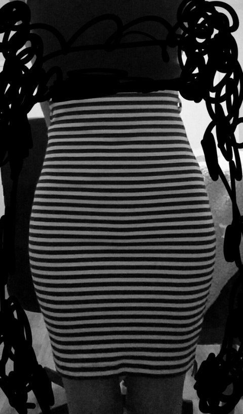 가로줄무늬 치마는 착시효과 일으킵니다. 무늬없는 치마나 청바지로 다시 검증 해드리겠습니다. 그리고 측면 샷도 있어야죠?