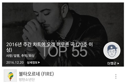 차트에 오래 남아 있는 불타!! 남돌중에선 1위고 총 18위야 꺄아 이삐들 팬티벗고 소리질뤄~~!!!