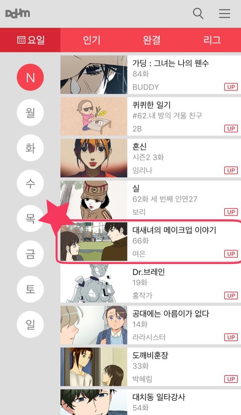 ㄷHㅅH녀의 메ㅇi크업 ㅇi야ㄱi라는 ㄷr음 웹툰이 있는데