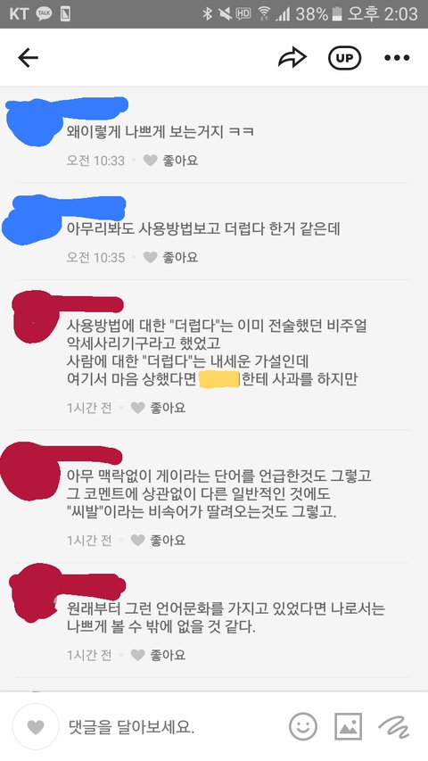 나는 조금 거북했고 아무말에나 욕쓰는것도 보고 듣기 불편했음