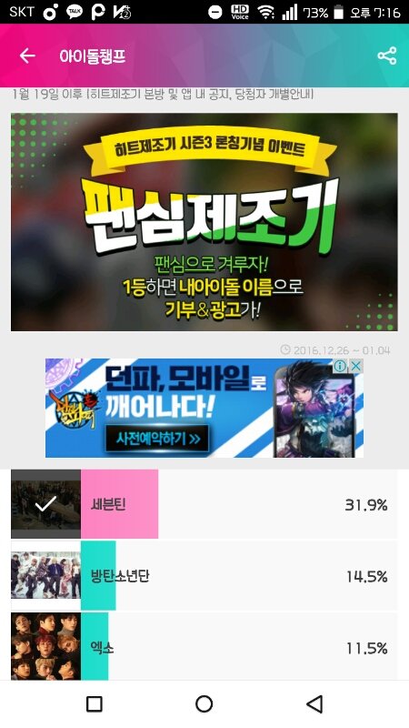 모르는 캐럿떨이 많은거같아서! 1위하면 세븐틴 이름으로 100만원 기부된데! 좋은일 하는거잖아 많이 참여하자 투표방법은 i돌챔프 깔고 차례차례하면 됩니당~♡