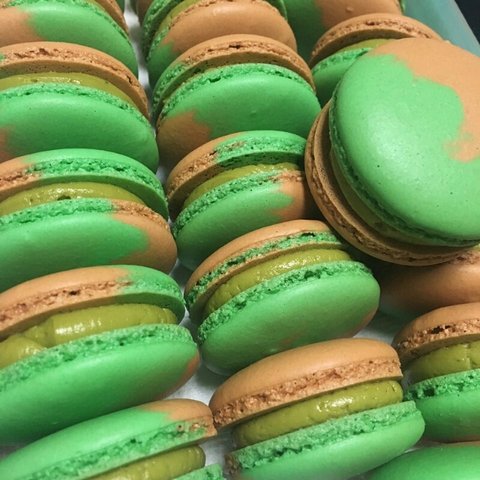 이건 일명 초코나무숲! 녹차초코마카롱이에요! 녹차크림에 다크초콜릿가나슈필링을 사용해서 샌드했어요~