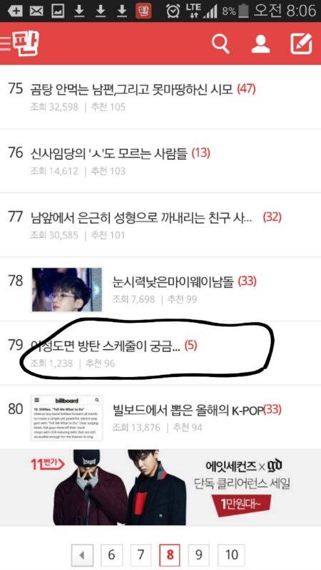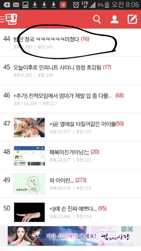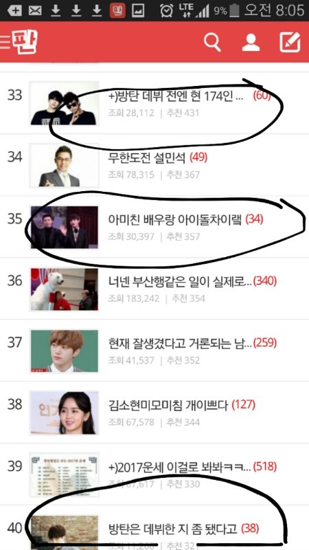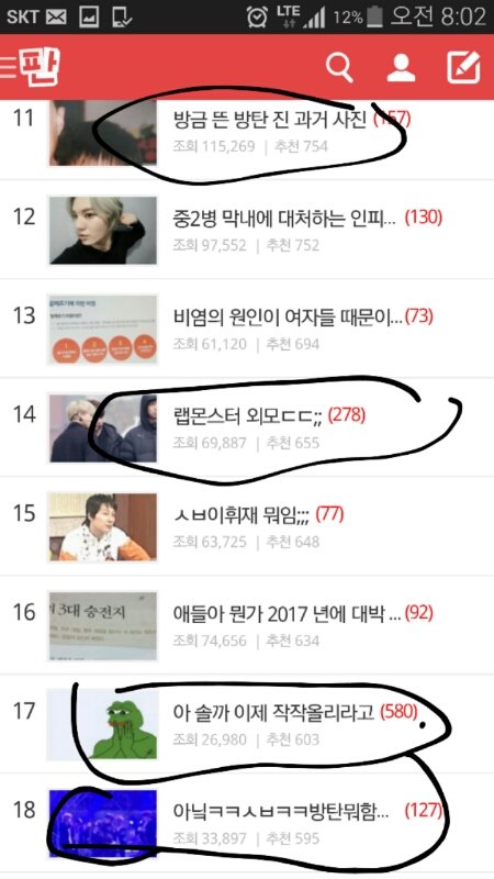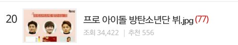 ㅋㅋ아직도 부정하는 분들아ㅋㅋ이게 현재 방탄관련된글 톡선 상황임ㅋㅋ그리고 저기에 까글 하나라도있어?ㅋㅋ제발 말같지도 않은걸로 부정하지좀말래ㅋㅋ