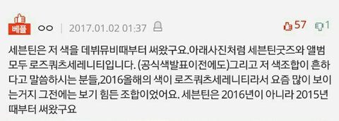 첫번째 베댓에 대댓글들 처럼 분홍파랑 조합을 세븐틴에게서 많이 봤다는것을 언급하면