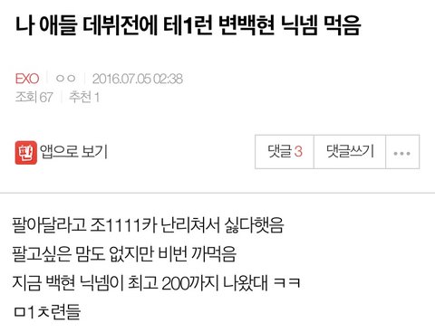 톄런 변백현 닉네임 엑톡꺼인듯
