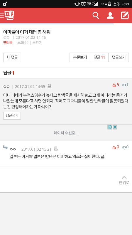 읍년들 지금썩수차트 자기들이 더 높다고 대상맞다고 한다