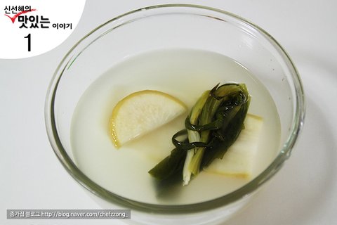 만드는 순서1. 동치미를 그릇에 담아두고 소면을 삶아주세요.* 소면은 거품이 올라올 정도로 끓으면 찬물을 부어주세요 이렇게 하면 쫄깃쫄깃한 면빨을 유지할 수 있습니다.