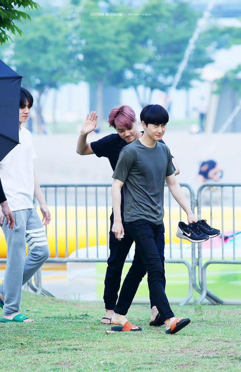 또 자기가 받은 선물 세훈이가 신고있고