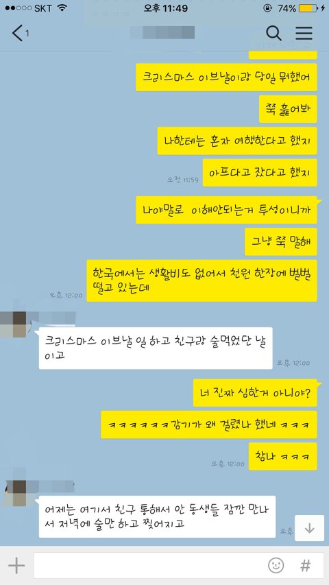 그리고 새벽 3시쯤 카톡으로 이제 들어간다고 연락이 오더군요.