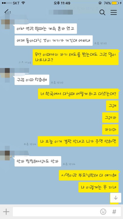 여튼 남편이 그렇게 늦게 숙소에 가고 다음날에 제가 연락 안돼서 너무 걱정했다, 왜 안했냐, 친정 부모님이 와있어서 안했냐(크리스마스 전날에 친정 부모님이 올라오셨었습니다..) 이리 말 하니 자기를 의심하냐고