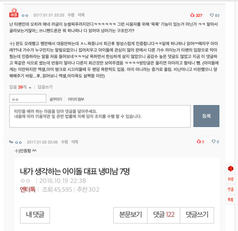 내가 쓴글 베댓됐는데 반대도 많고 욕도 많아 놀랐음