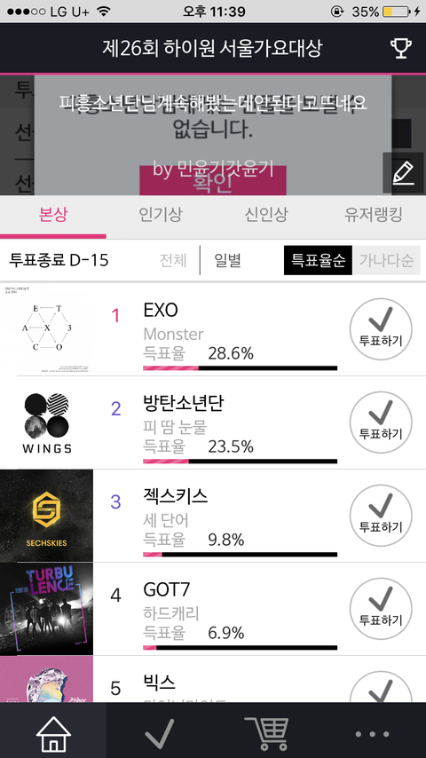 빅히트가정해준 총공시간2시에는 1위로 올라갔다가 금방내려옴 격차벌어진거봐 탄식...