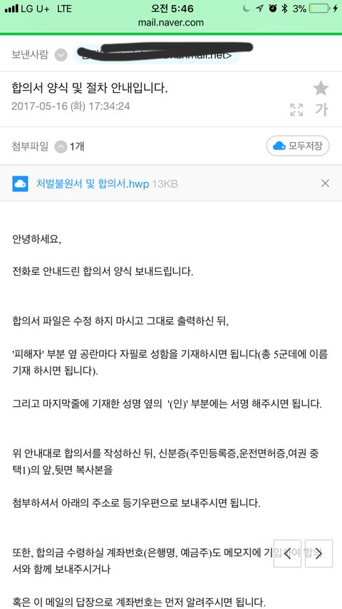 그 후 그쪽에서 통화가 한번 닿았고 2천만원에 합의를 하고싶어한다고 연락을 받았어요