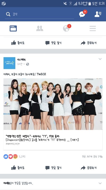 페이스북 보내기
