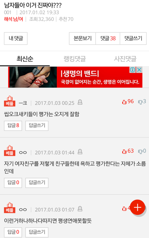 질문은 남자한테 하는데 베플은 다 여자임ㅎㅎ