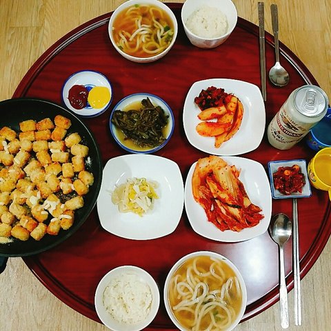 총각김치&낙지젓갈&참치마요주먹밥&만두떡볶이&새우조개탕
