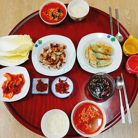 배추&김치&삼겹살&낙지젓갈&만두&탕수소스&라면