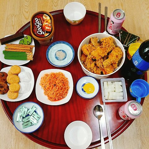 과자&찹쌀떡&초콜렛&비빔면&치킨&삼각김밥
