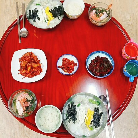 배추김치&낙지젓갈&깻잎장아찌&새우조개탕&떡만둣국
