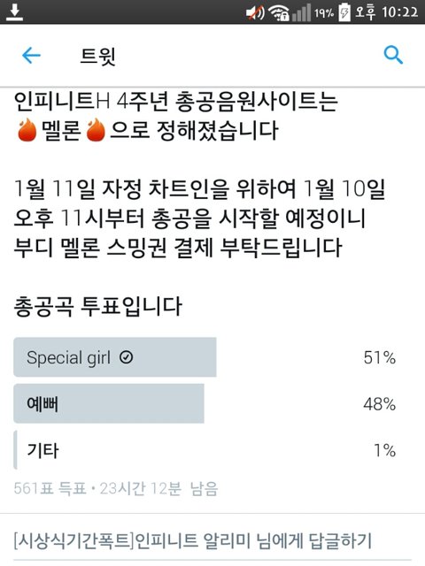 총공곡 슾걸이랑 ㅇㅖ뻐박빙이다 예뻐할걸후회중 애들저작권료들어올텐데ㅜㅜ 난 벅1스밀었지만 멜렉ㅠㅠ 챁인힘들테지만 다운겁나해야겠다 하는데까지해보자 ㅎㅇㅌ