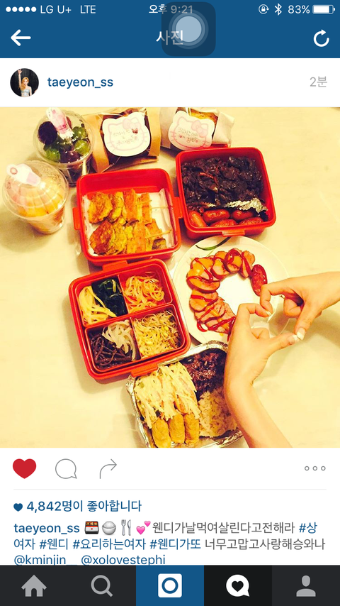 2.추석에 태연이 집에 못갔는데 마침 웬디도 집이 캐나다라 멀어서 못갔음. 혼자있을 태연을 위해 웬디가 태연에게 추석도시락 만들어줌