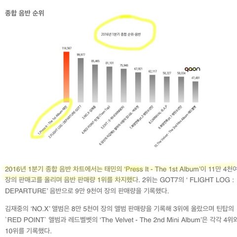 위에 사진은 가온에서 직접 쓴 1분기 음반상 내용임 하지만 가온이 갑작스럽게 기준을 바꾼다는 사실을 통보해서 태민이 1분기 음반상을 못받음