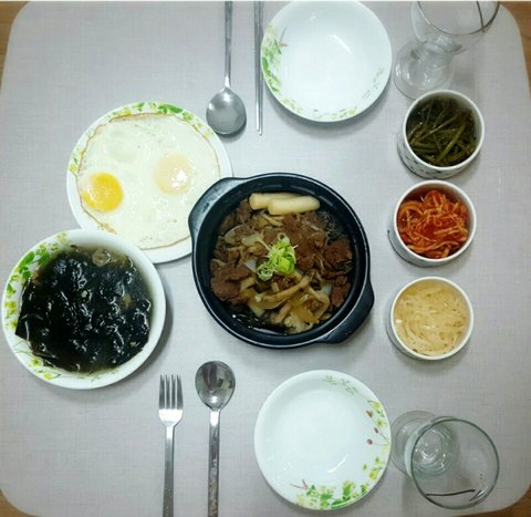 그리고 생일에 빠질 수 없는 미역국이랑 잡채에요