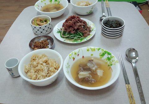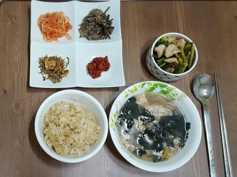 간단한 국 끓이고 반찬만 꺼내면 끝이라 민망..