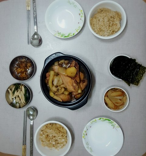 수저는 뒷전이라.. 차리다보니 수저도 이상하게 두고 찍었네요