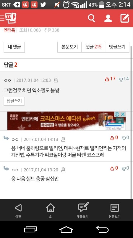 아니 저기팬톡분위기 저글에 댓글싼년들 다삭제해