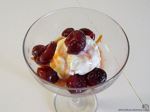아이스크림 위에 체리 소스밖에 없어서 좀 허전해 보이기는 하는데, 따로 장식을 하지 않는게 전통적인 요리법인 모양이더군요.