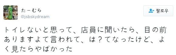 화장실 없는 줄 알았는데 점원이 바로 눈앞에 있다길래 뭔소릴 하나했더니 진짜였다.