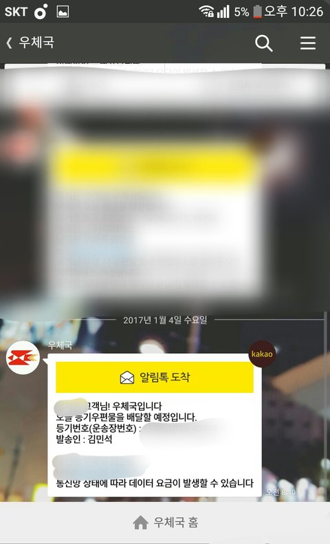 이렇게 톡으로 인증 보내구 웅녀가 등기 보내준 바로 그 다음날!! 일어나자마자 우체국에서