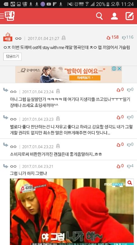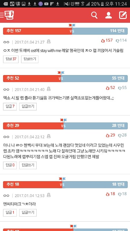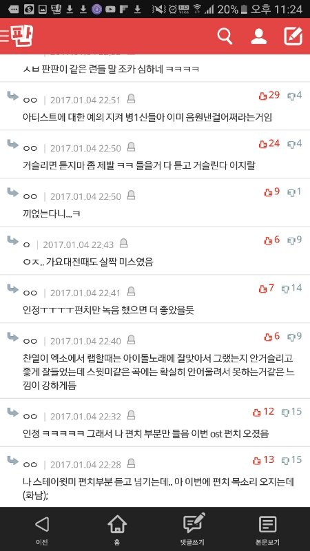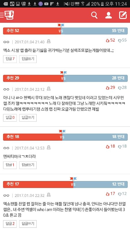 찬열이 오질라게 까임 아이돌 랩 어쩌구저쩌구 찬반댓글 다 반대 누르고 오자ㅇㅇ 하이퍼는 하는법을 몰라서 ㅈㅅ.. 스밍 공기계 원하면 인증가능