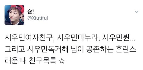 시우민 부인과 여자친구와 독거해가 공존하는 친구목록에서 ㄹㅇ빵터짐 ㅋㅋㅋㅋㅋㅋㅋ