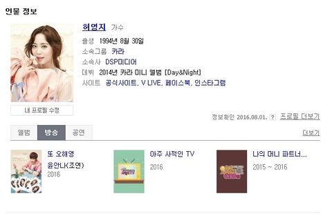 허영지가 카라에 들어가고 몇년도 안되서 카라가 해체를 선언 현재 연기자로 활동중