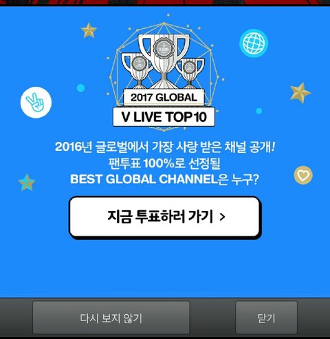 브2앱 들어가기만 해도 저거 뜨니까 투표 안 한 이삐들 있으면 들어가서 투표하기~ 지금 1위라 1위 꼭 꼭 지키자ㅜㅜ