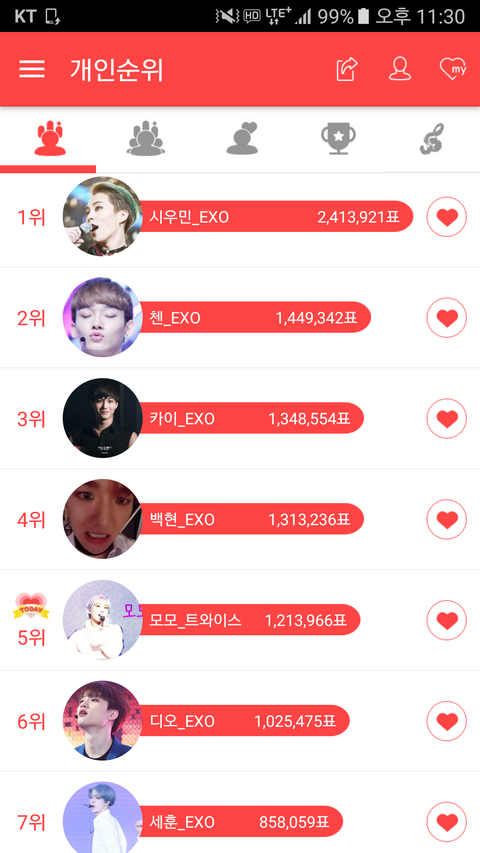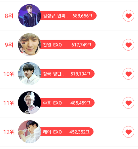 ㄴㄴ 지금 저 투표 상위권최애들 꿈깨 본격적으로 중국언냐들 현질 시작하면 찬세백이 다 쓸어버릴거임 벌써 모금한다는 얘기 못들었냐?