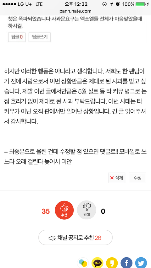 아 그리고 저 글에 추가할 점 이젠 여기 댓글로 남겨 ㅇㅇ 읽고 넘기지 말고 너희들 의견 제대로 말해주라 댓글로