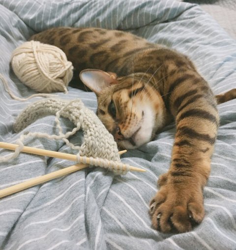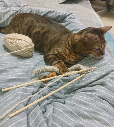 여집사는 사랑하는 냥님들 목도리를 뜨는중.