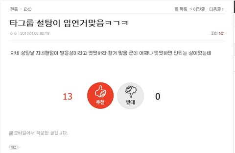 1.5월 실트총공참여한거. (팬톡참여 자료있어)2.멜1뮤전에도 땅굴땅굴거린거,아랫동네라 한거3.1월 6일 오늘, 멤버 슈가를 '설탕'이라고 서치방지를 하고 돌려깐것(슈가가 2017년 1월 6일에 올린 로그가 올라온 후에 돌려깐 글이 올라옴.)4.멜1뮤 앨1범1상 공정성 글 올리고 베플에서 돌려깐거5.멤버 '슈가'가 공카에 팬들보고 '떳떳하라'고 올린 글을 유출해서 까는 글 올림