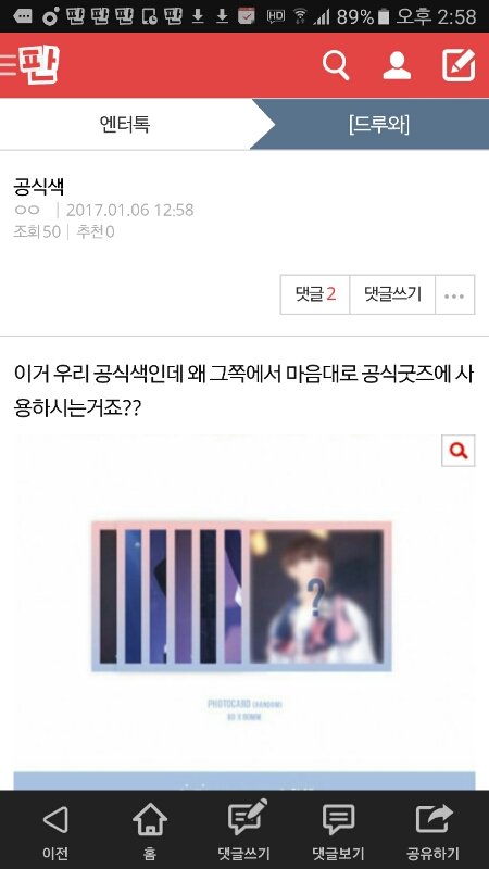타팬톡에 글쓴애랑 엔터톡 쓴애 글 지워~