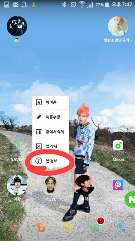 홈버튼 누르고 앱 길~게 누르면 뜨는 창에 앱정보에 들어가