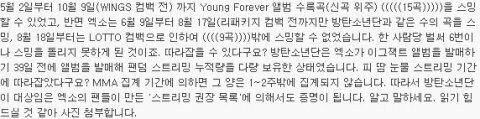 이러한 상황에 저희는 감정에 호소하는 글이 아닌 정확한 자료들을 정리하여 글을 올렸고 이러한 글에서 저희는 타팬덤을 포함한 불특정 다수들에게 이유 없는 비난을 받고 이상한 팬덤이 되버렸습니다.