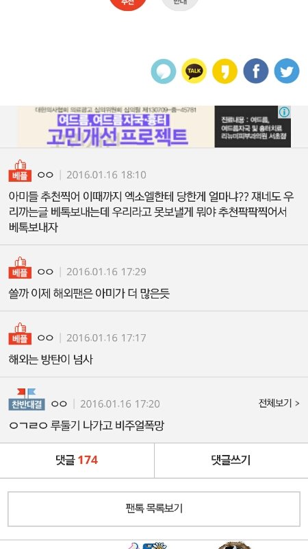 저거 1년 전임..ㅋㅋ 요새 상 때문에 그런게 아니라 원래부터 우리 싫어했었네 그때 새로운 베플 뜨길래 엑톡인 줄 알고 들어갔더니 관음한건 ㅈㄴ 잘못했는데 ㅅㅂ..ㅋㅋㅋㅜ