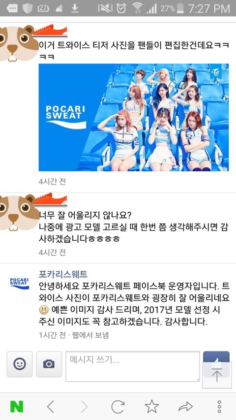 바야흐로 2017년 1월 트와이스 포카리 cf사진이 뜸