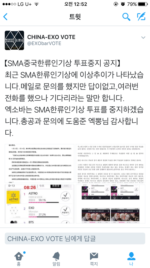 그래서 엑셀들이 문의를 했고, 정상적인 답변을 촉구하지 않으면 엑소바는 한류인기상 투표를 중지하겠다는 주장임.