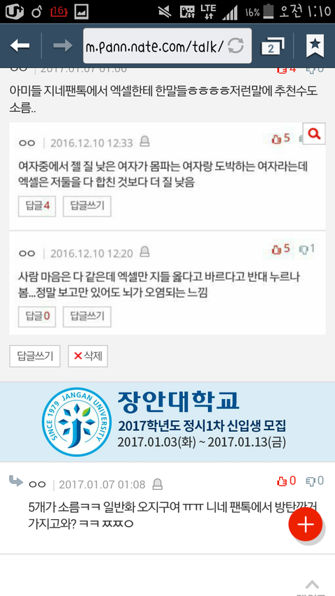 벽반 놀러왔다가 병신들 글 보고 토할 것 같음