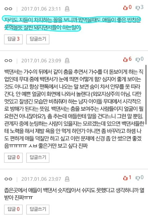 인성 씹오지네! 이번에 가요대ㅈ전에서 찬이 휴대폰 만지는 짧은 순간이 방송으로 나가서 오해 샀잖아 근데 알고보니 사진찍으려고 카메라 키던 순간이었어 알겠어? 영상에서 짧은 순간만 보고 판단하지마라고
