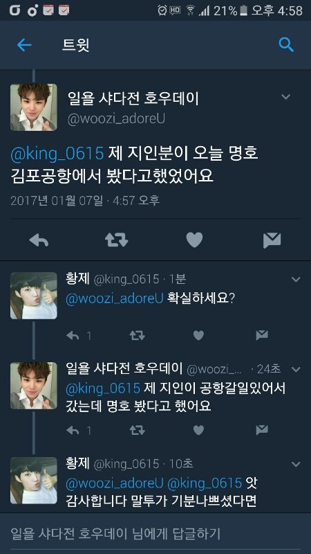 명호 공항 갔다고하던데?ㅜ